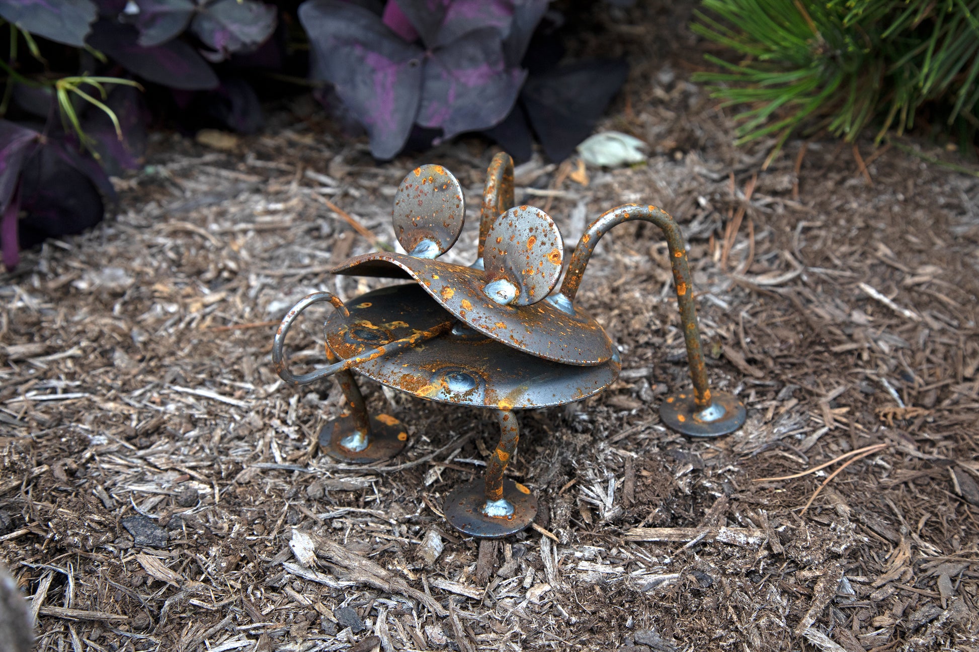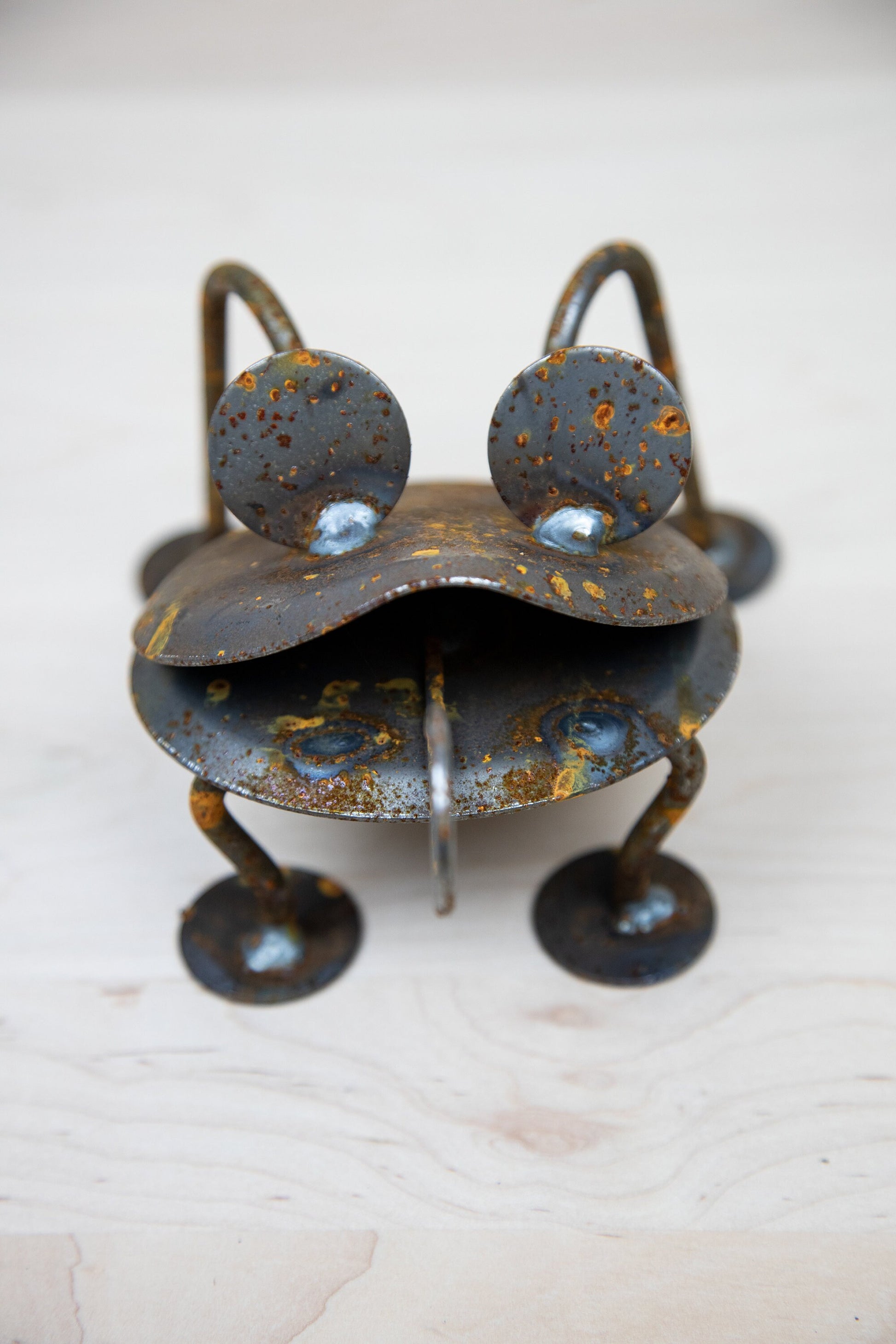 Frog is made out of solid steel from left over parts. Truly a masterpiece from the junk bin.