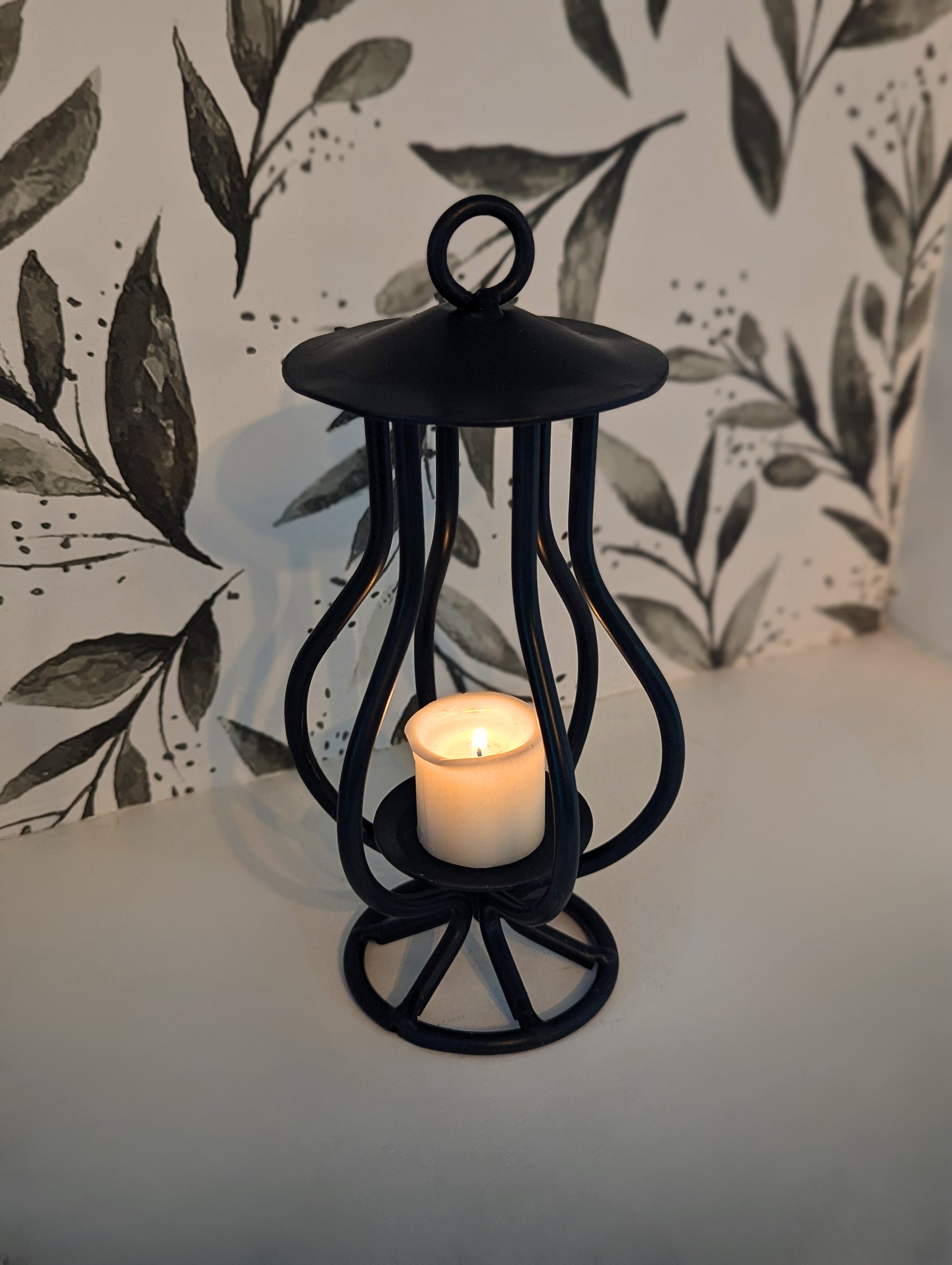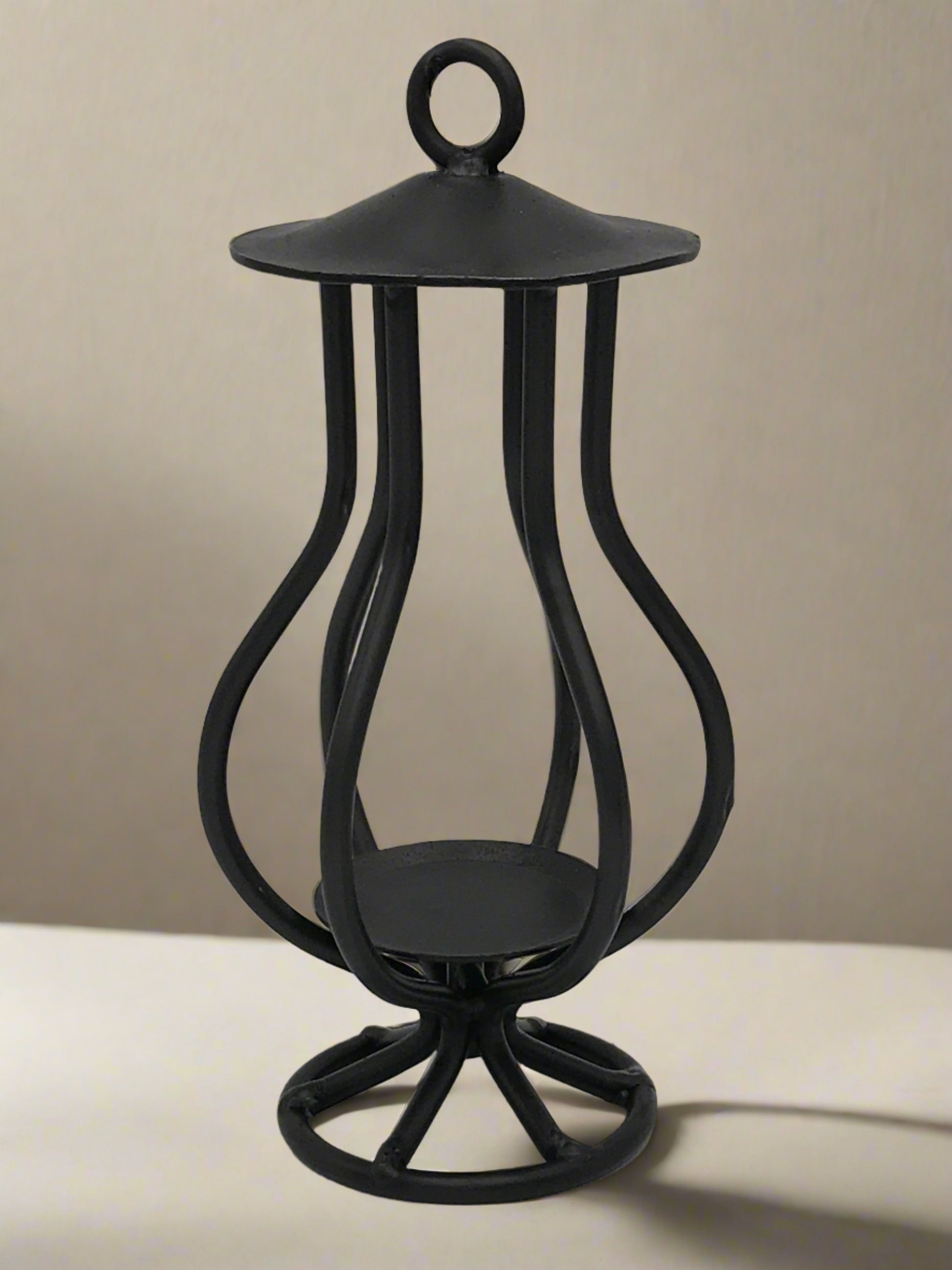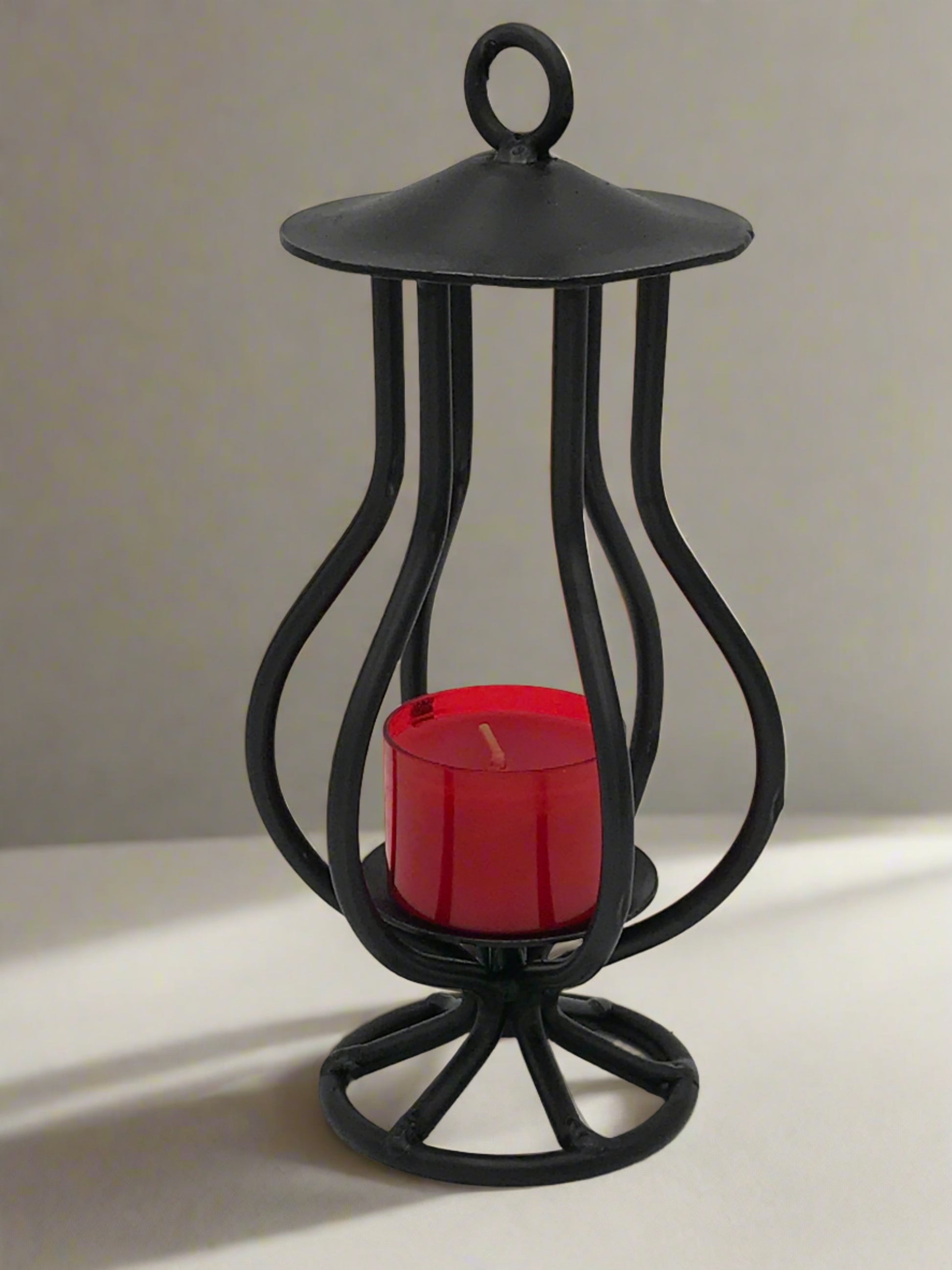 Illuminate your space with our exquisite wrought iron tea light lantern, meticulously handcrafted to bring a touch of elegance and charm to any setting.