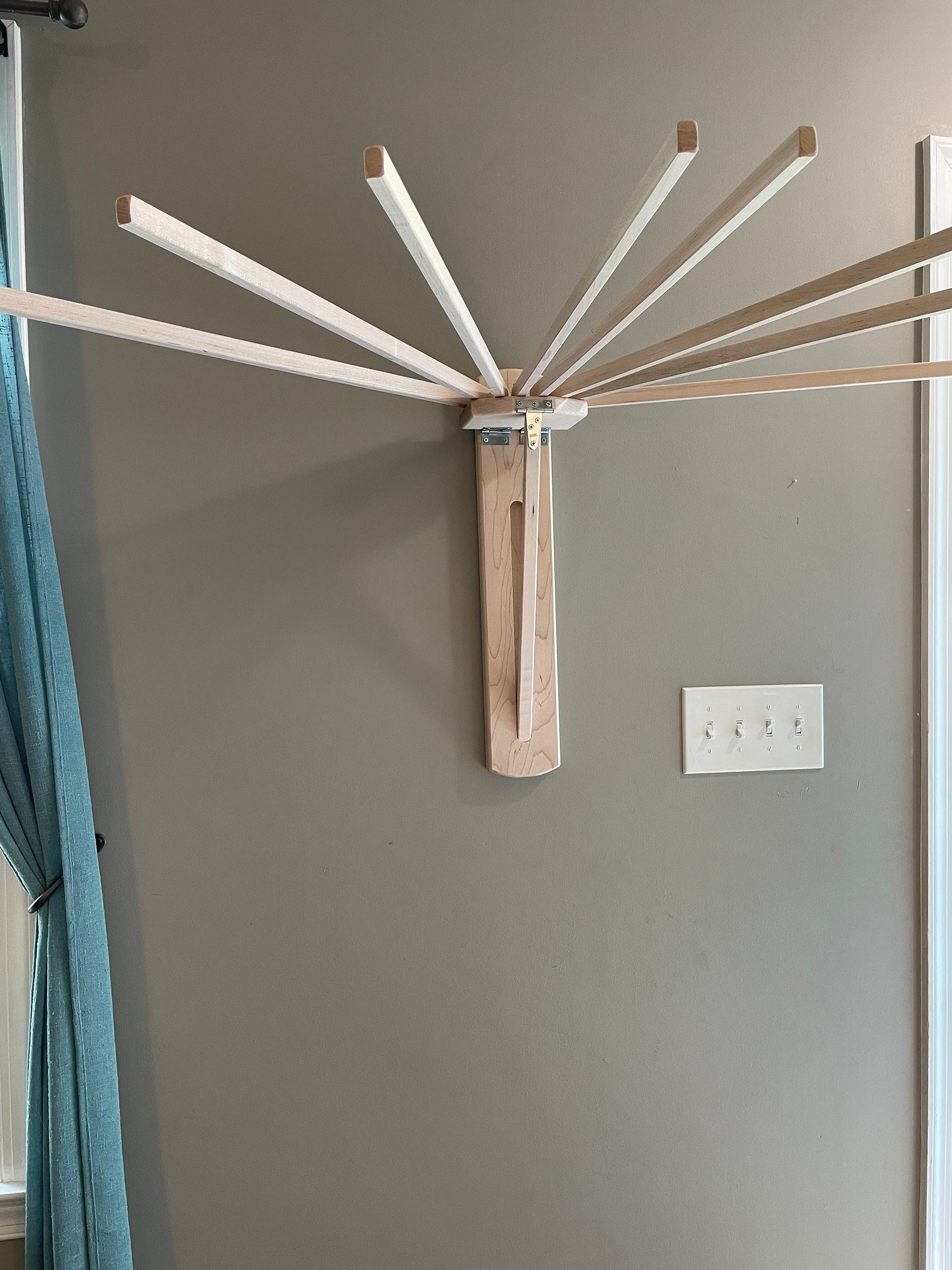 Introducing our Heavy duty amish made 8 Arm drying rack. With its straightforward design, just hang the rack using the two predrilled holes and spread the drying arms. (Hardware is not included).