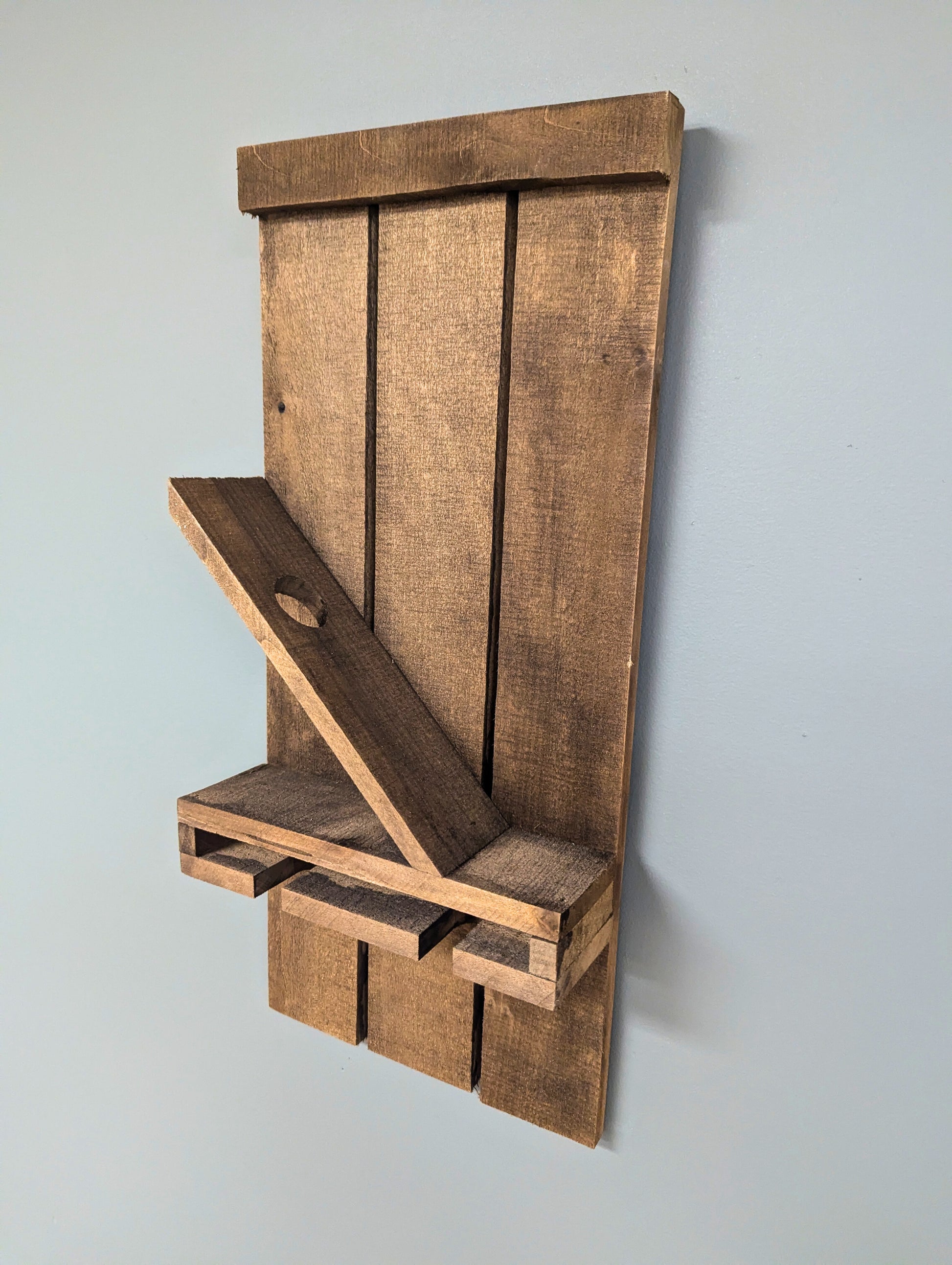 Beautifully crafted wall mount wooden wine rack, perfect for any wine enthusiast. Handmade from wooden pallets by skilled Amish craftsmen, this 1 bottle wine rack offers a rustic yet functional design that enhances your kitchen organization or bar decor.