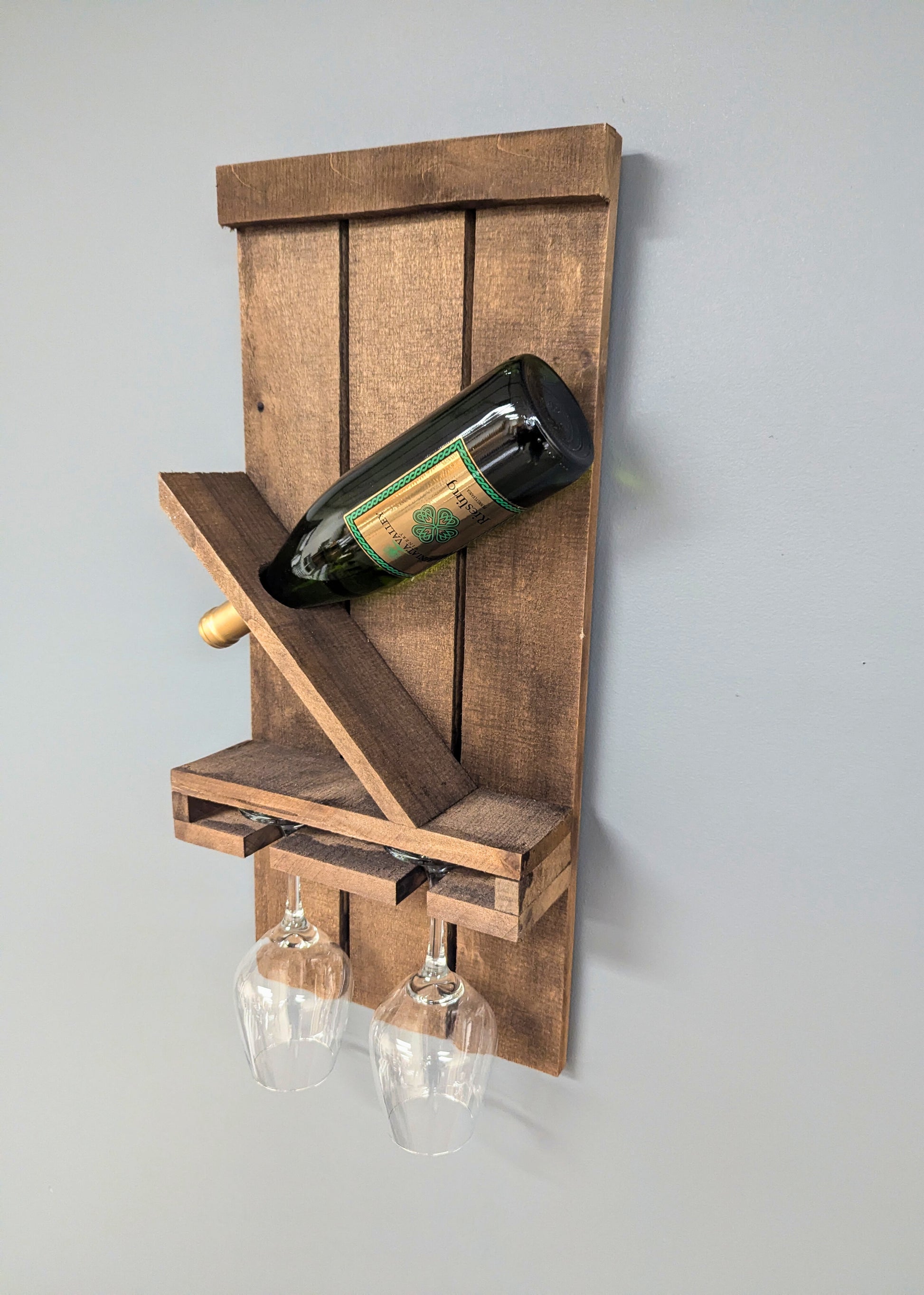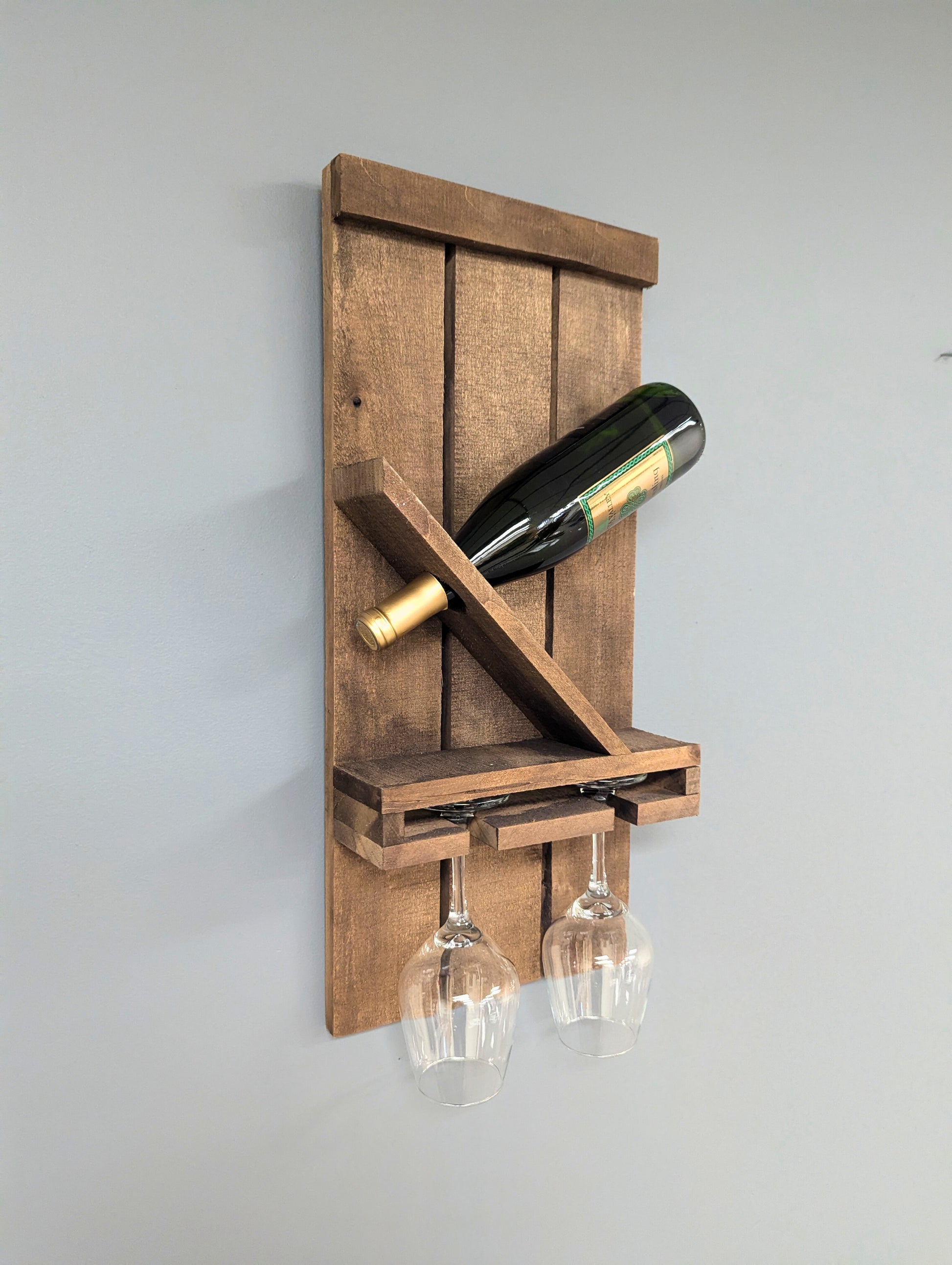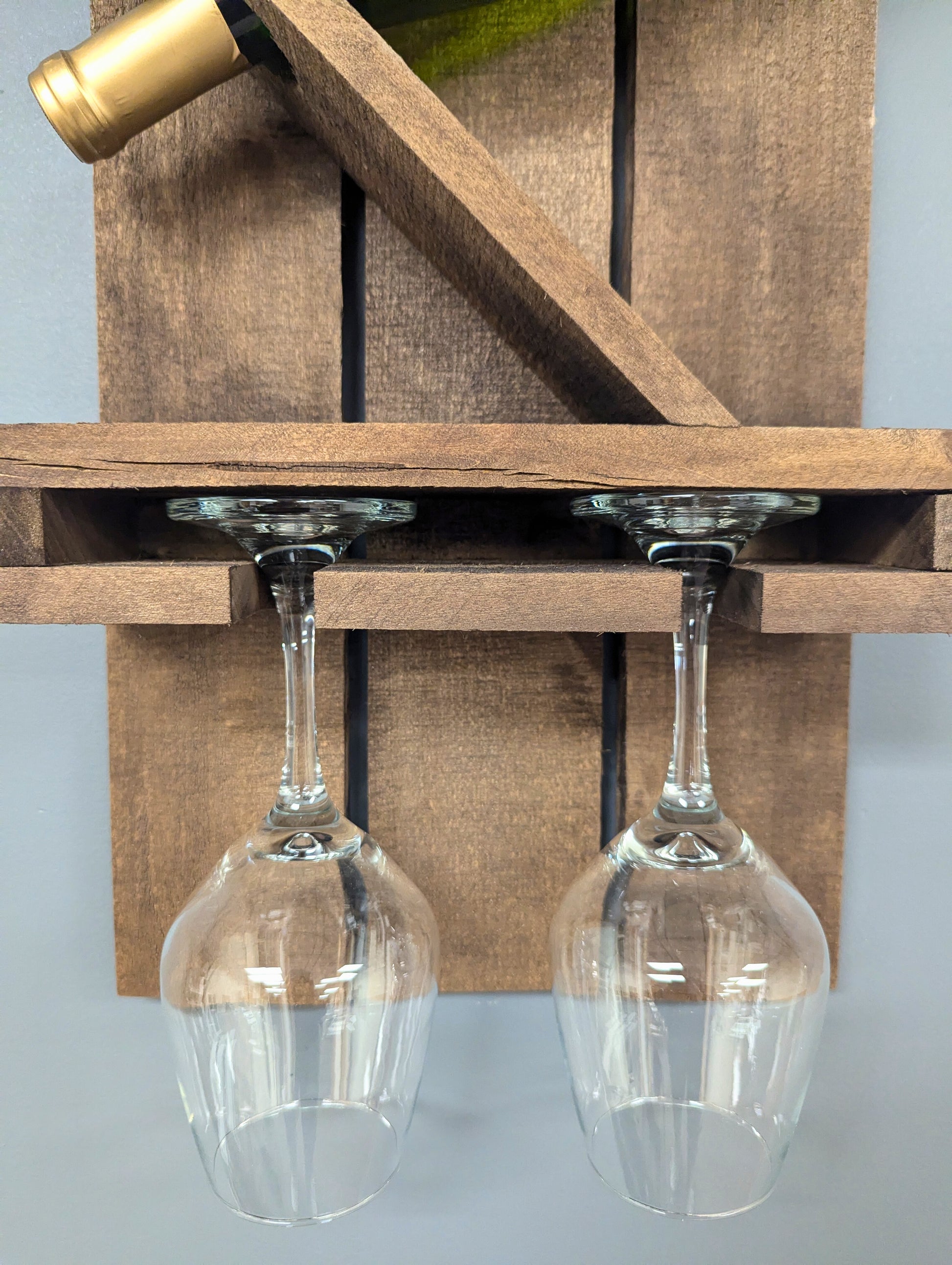 Perfect for small spaces, this bottle and glass holder turns your wall into a stylish wine storage display. Get yours today and bring rustic elegance to your home!
