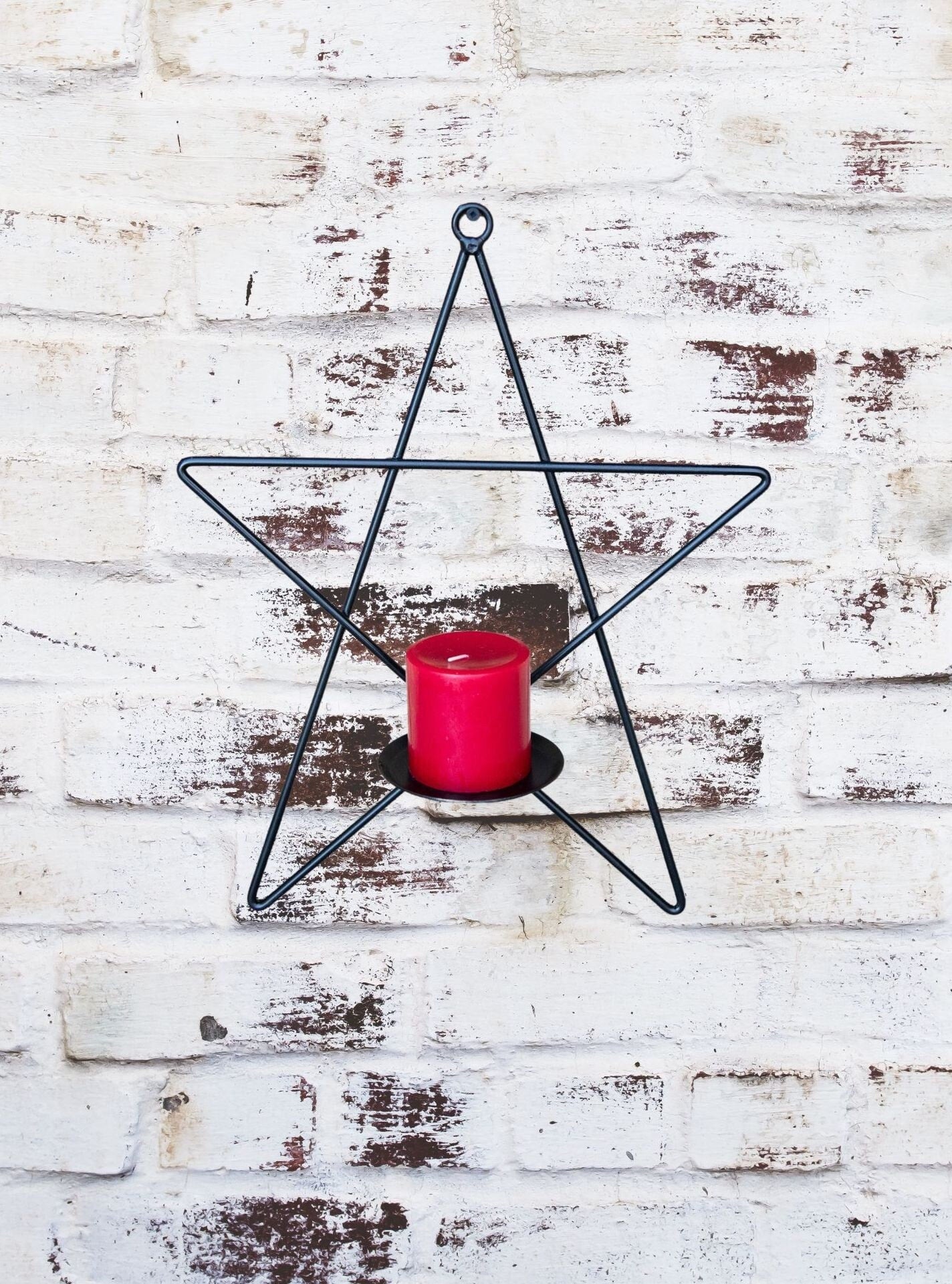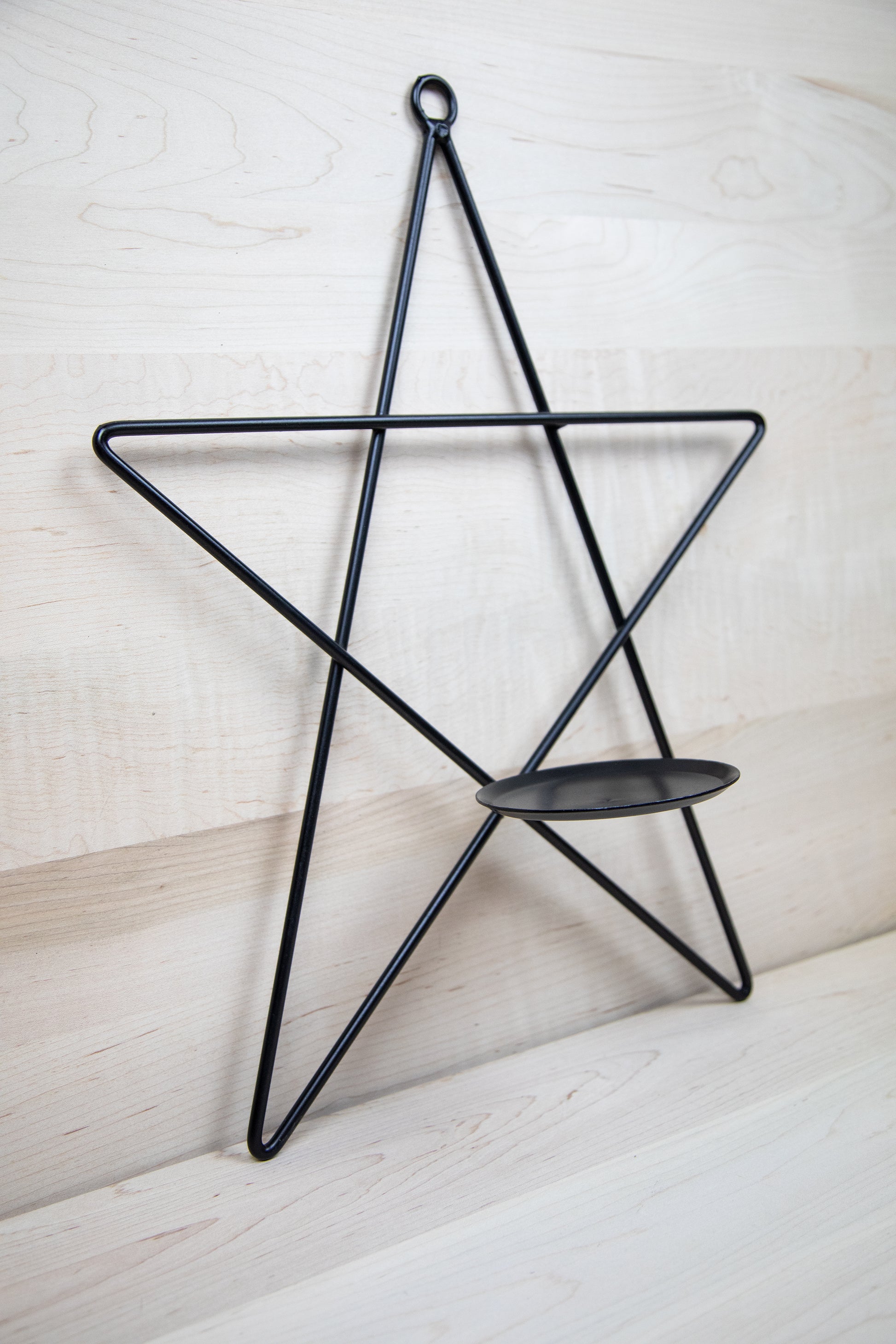 Homemade Amish crafted Wrought Iron Star Pillar Candle Holder Wall Sconce.