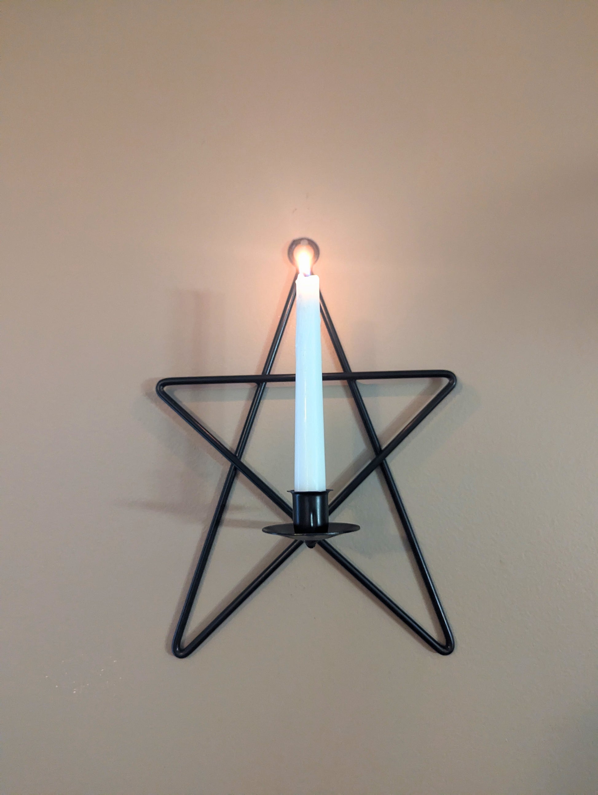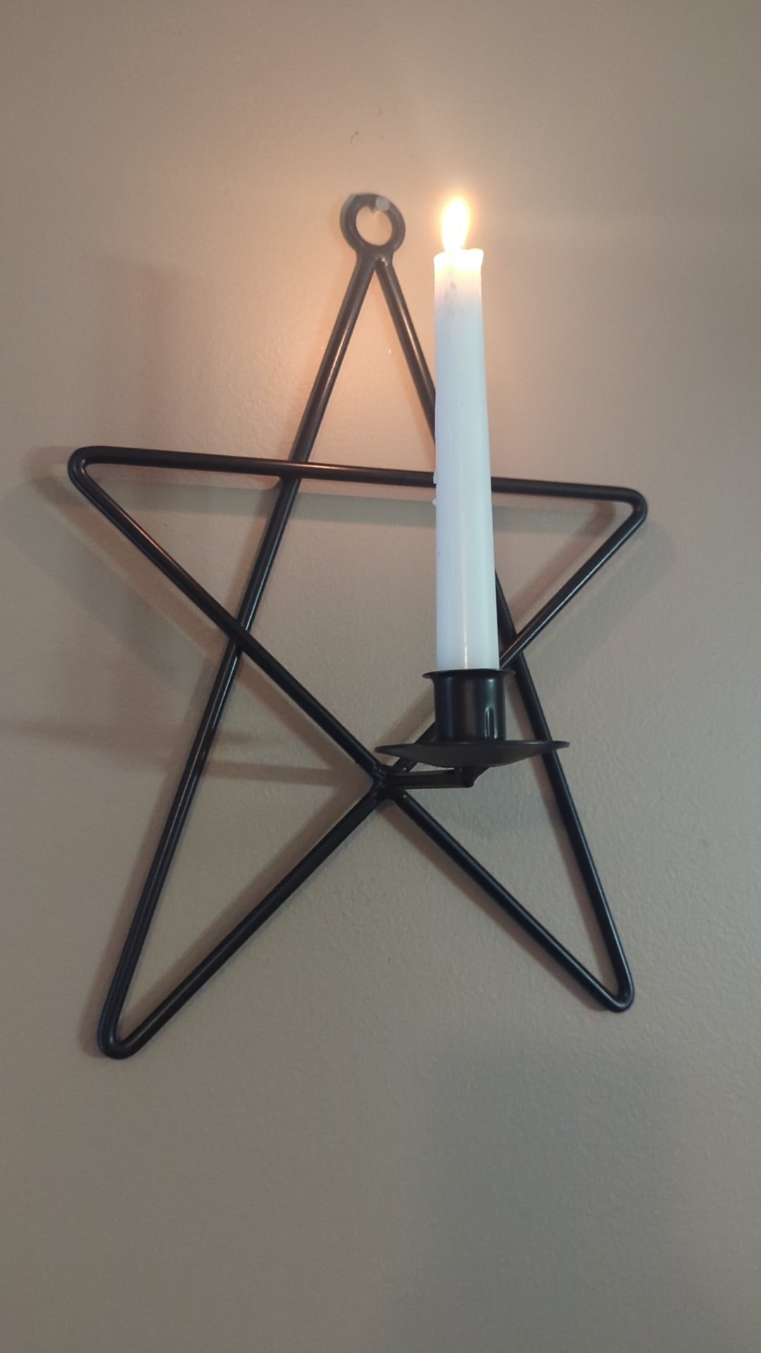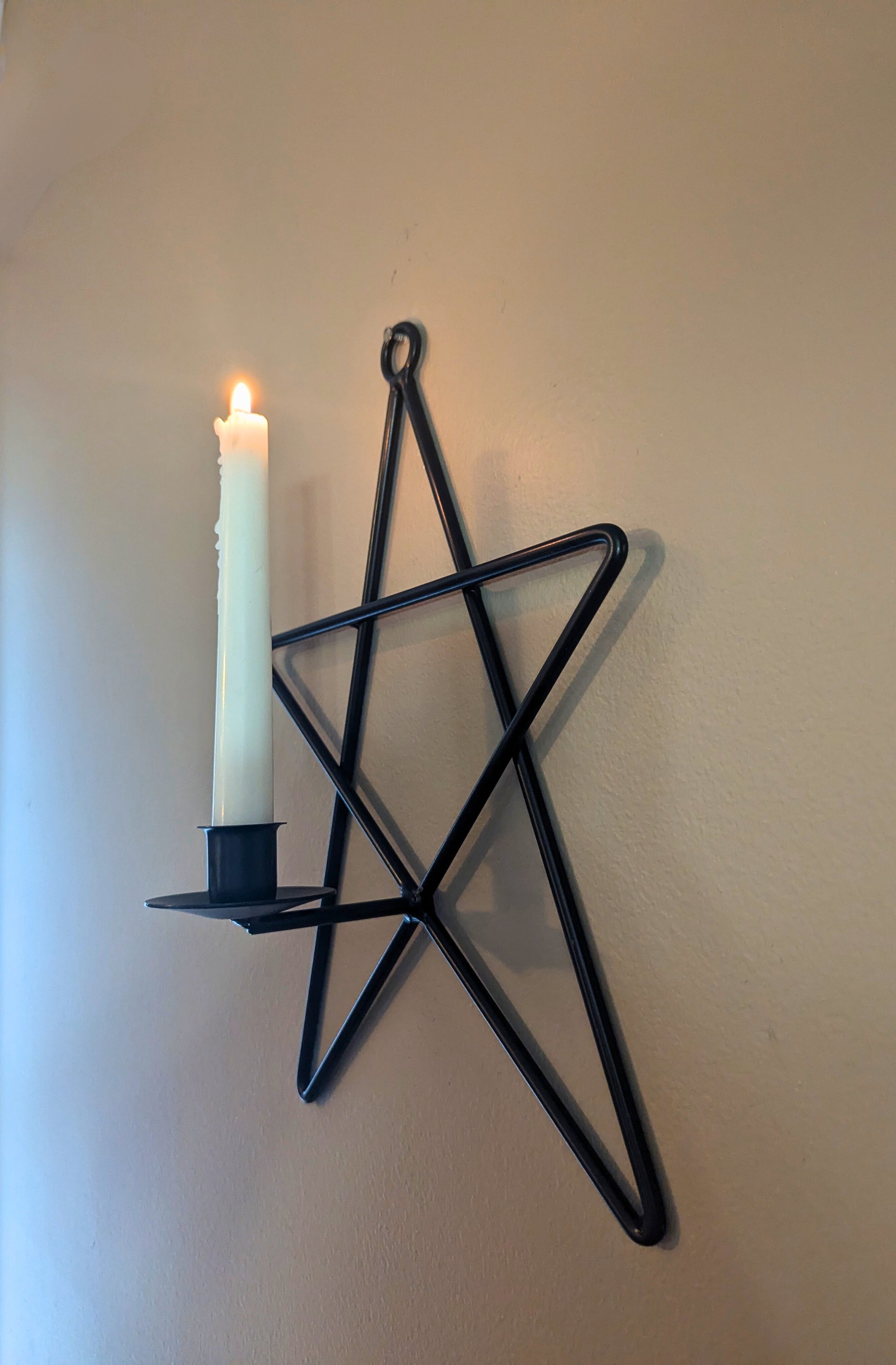 Homemade Amish crafted Wrought Iron Star Taper Candle Holder Wall Sconce.