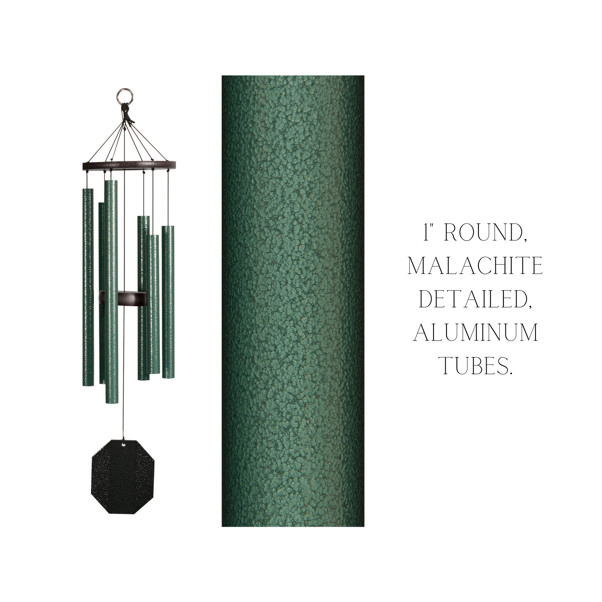 With a malachite detail they indulge in the harmonious tones produced by the 1" round tubes, available in four different sizes—32", 36", 41", and 44".