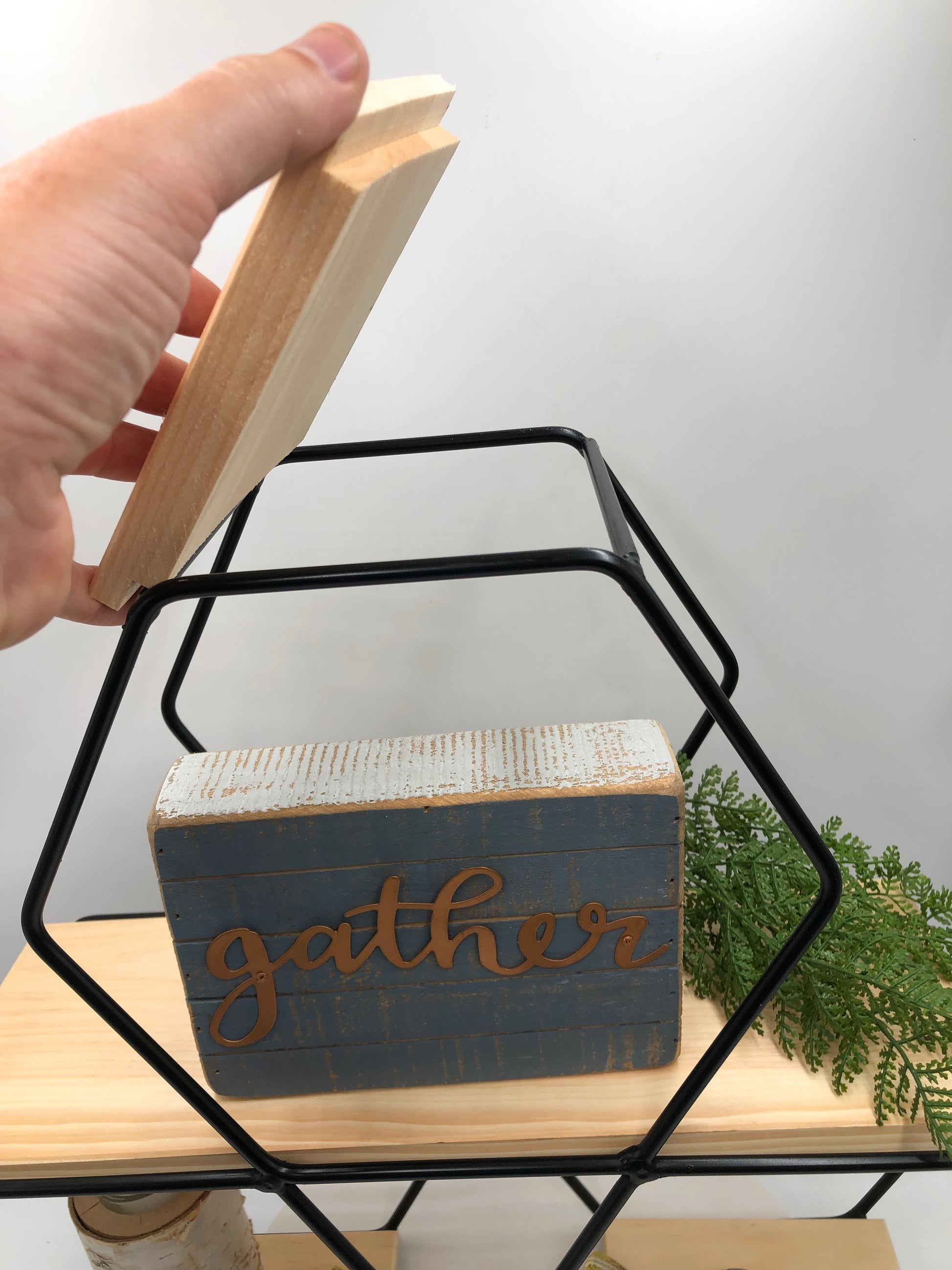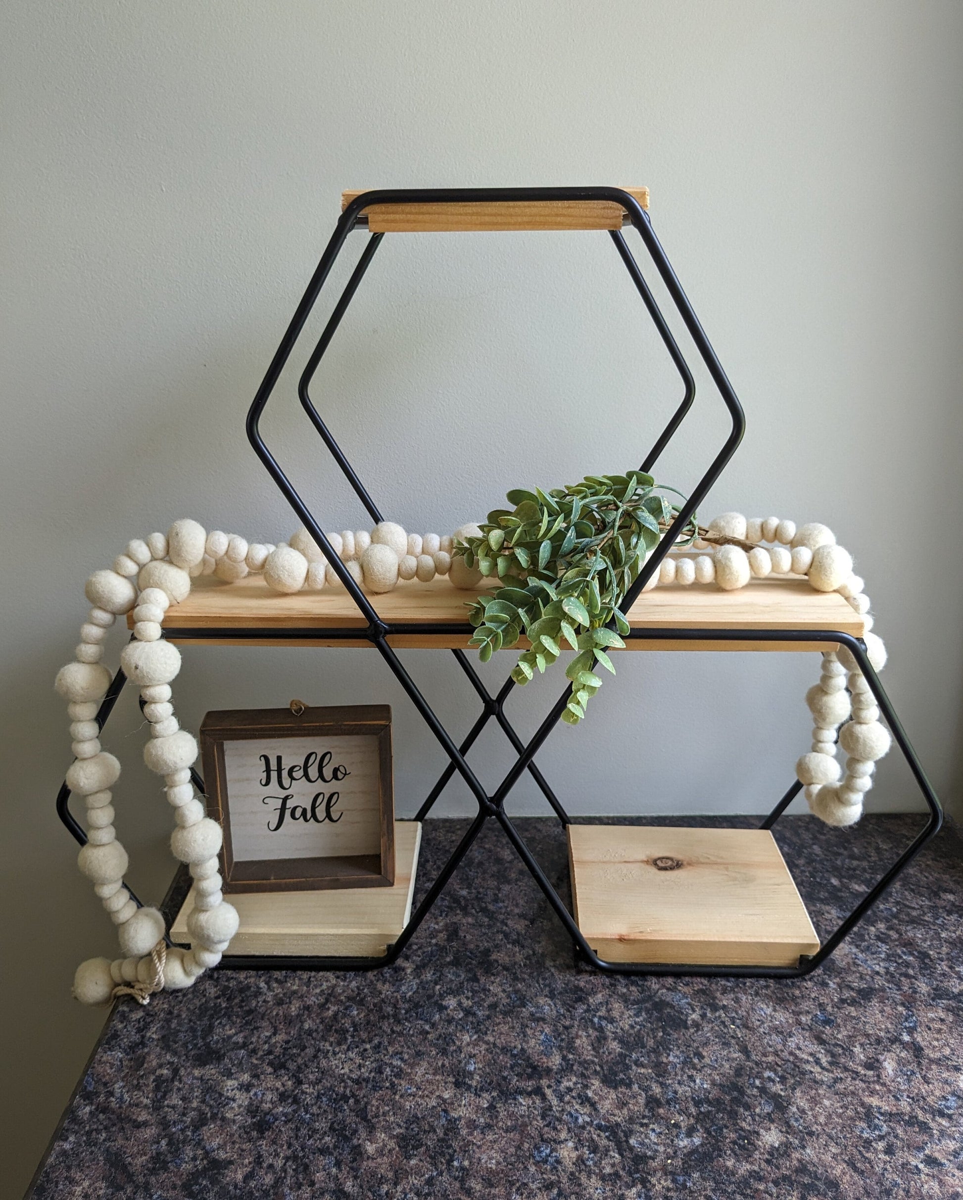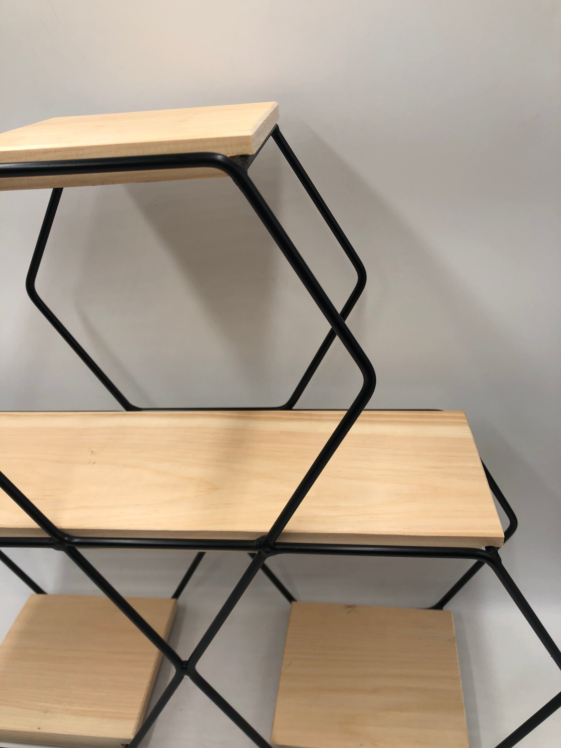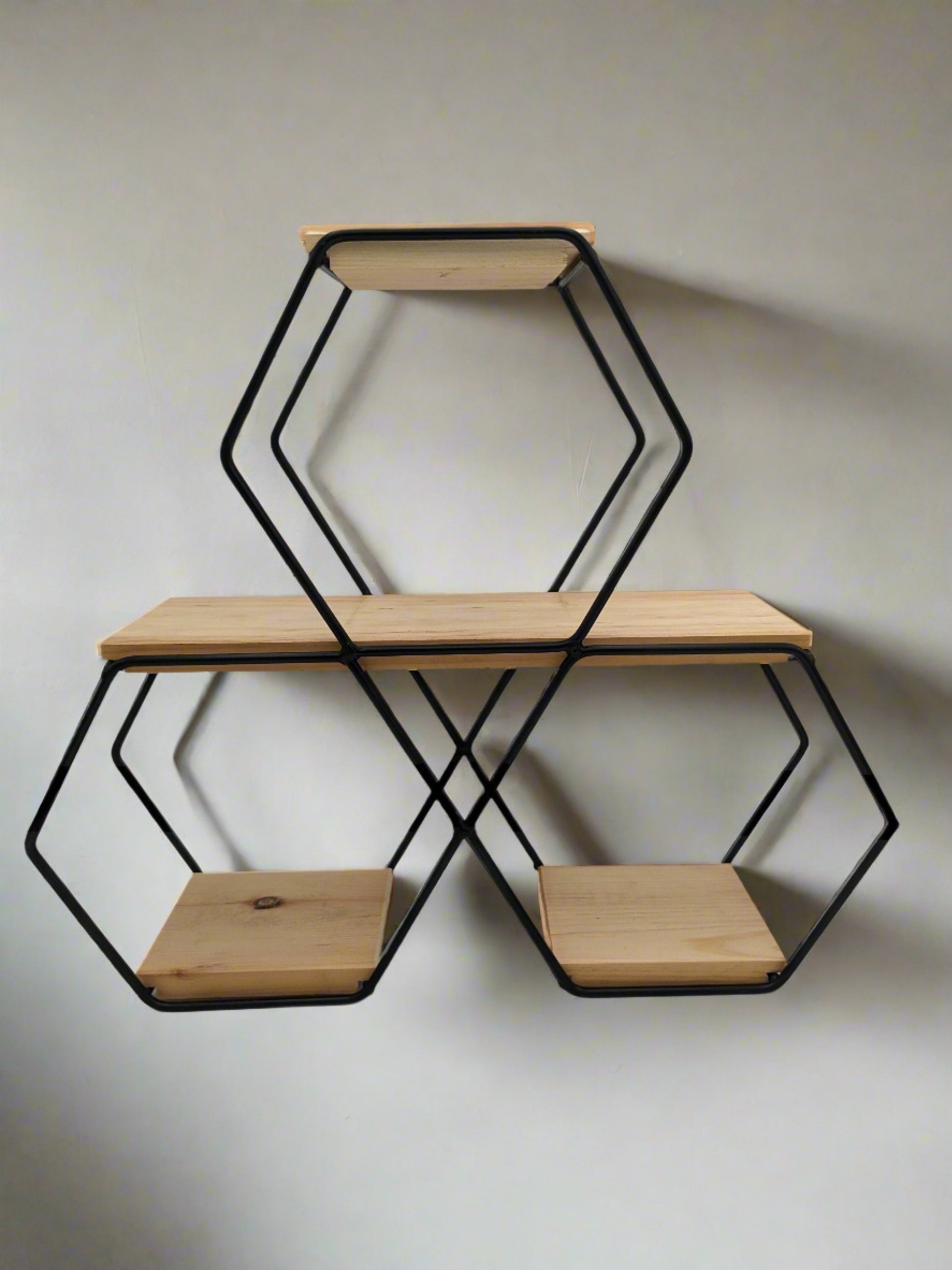 Wrought Iron Hexagon Shadow Box with Wooden Shelves