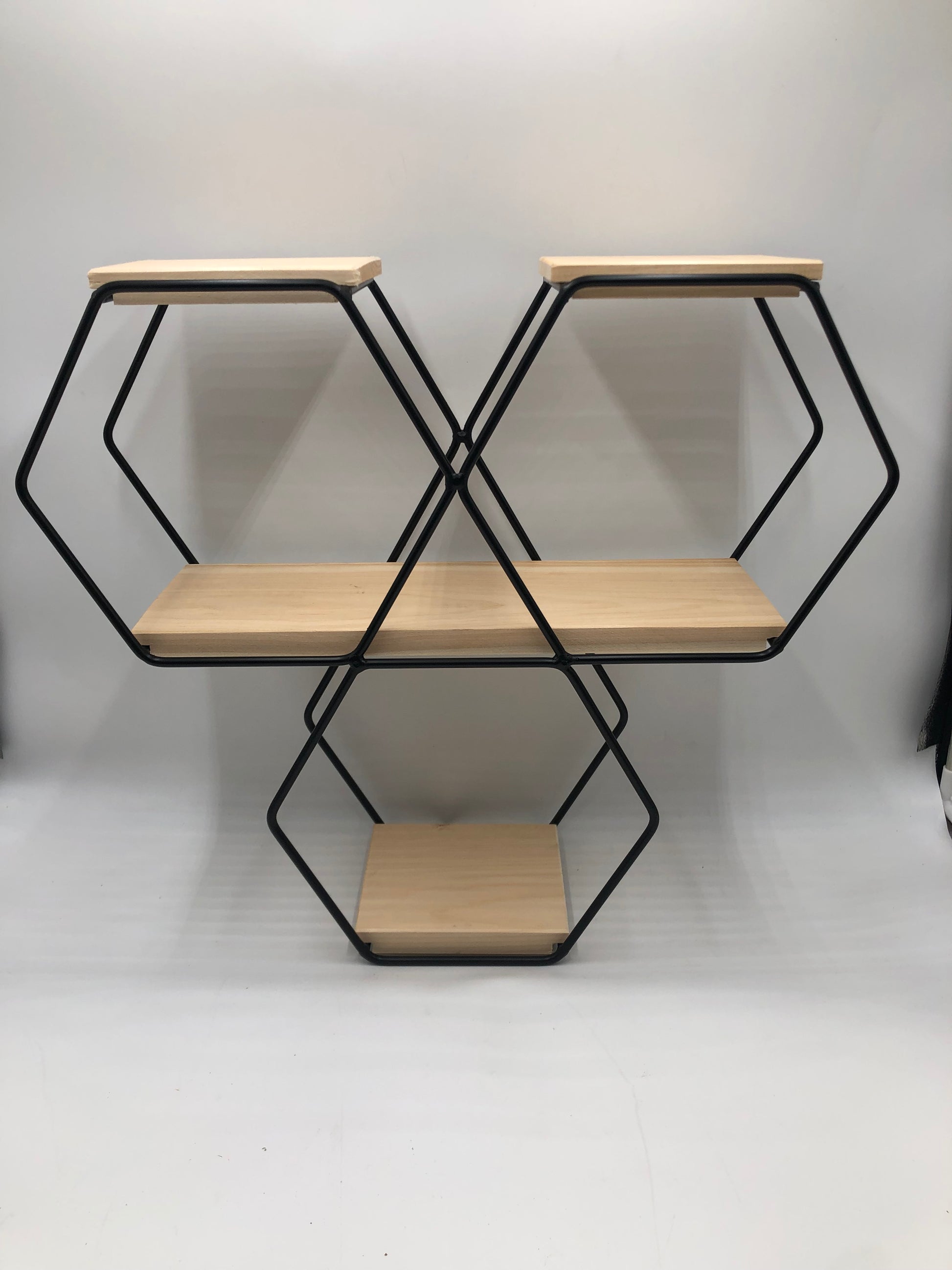Wrought Iron Hexagon Shadow Box with 3 Shelves.