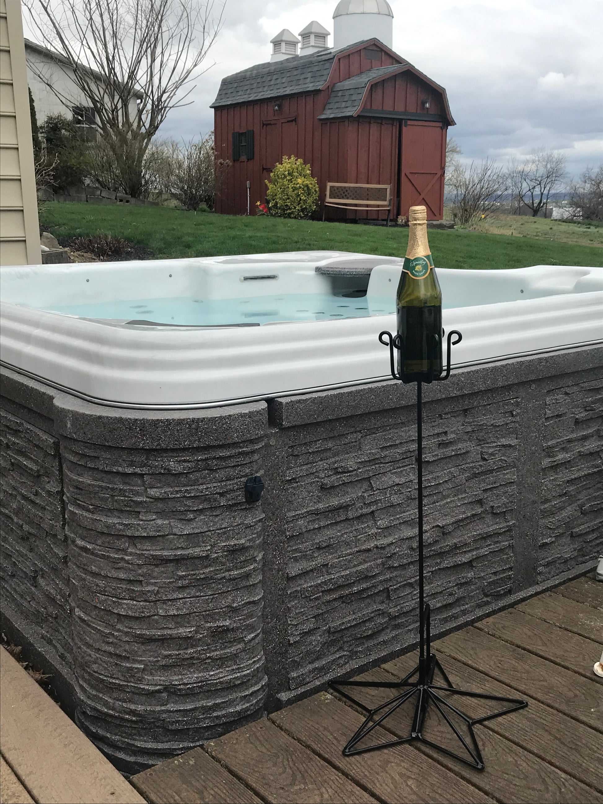 This bottle holder is designed to hold two of your favorite wine bottles, soda cans, water bottles, etc... Would work great to sit outside of your pool or hot tub!