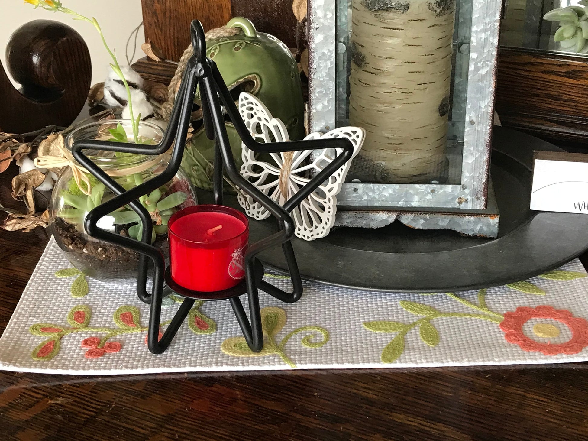 Approx. size: 7" wide x 7.75" high with 2.5" candle plate