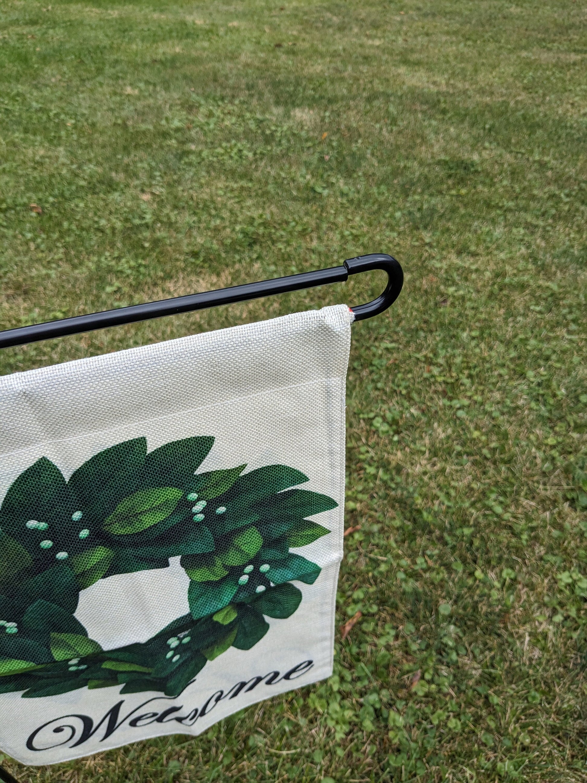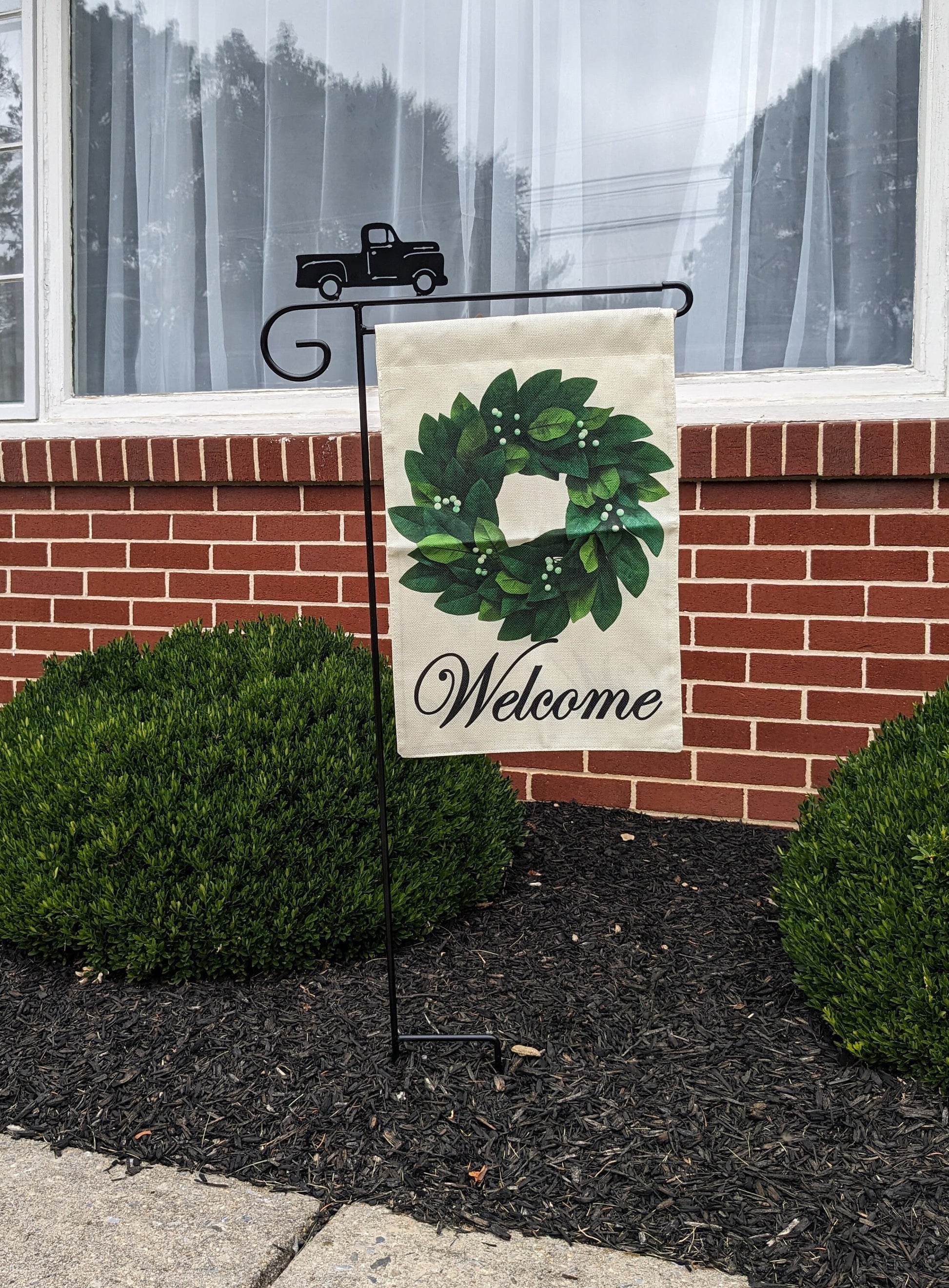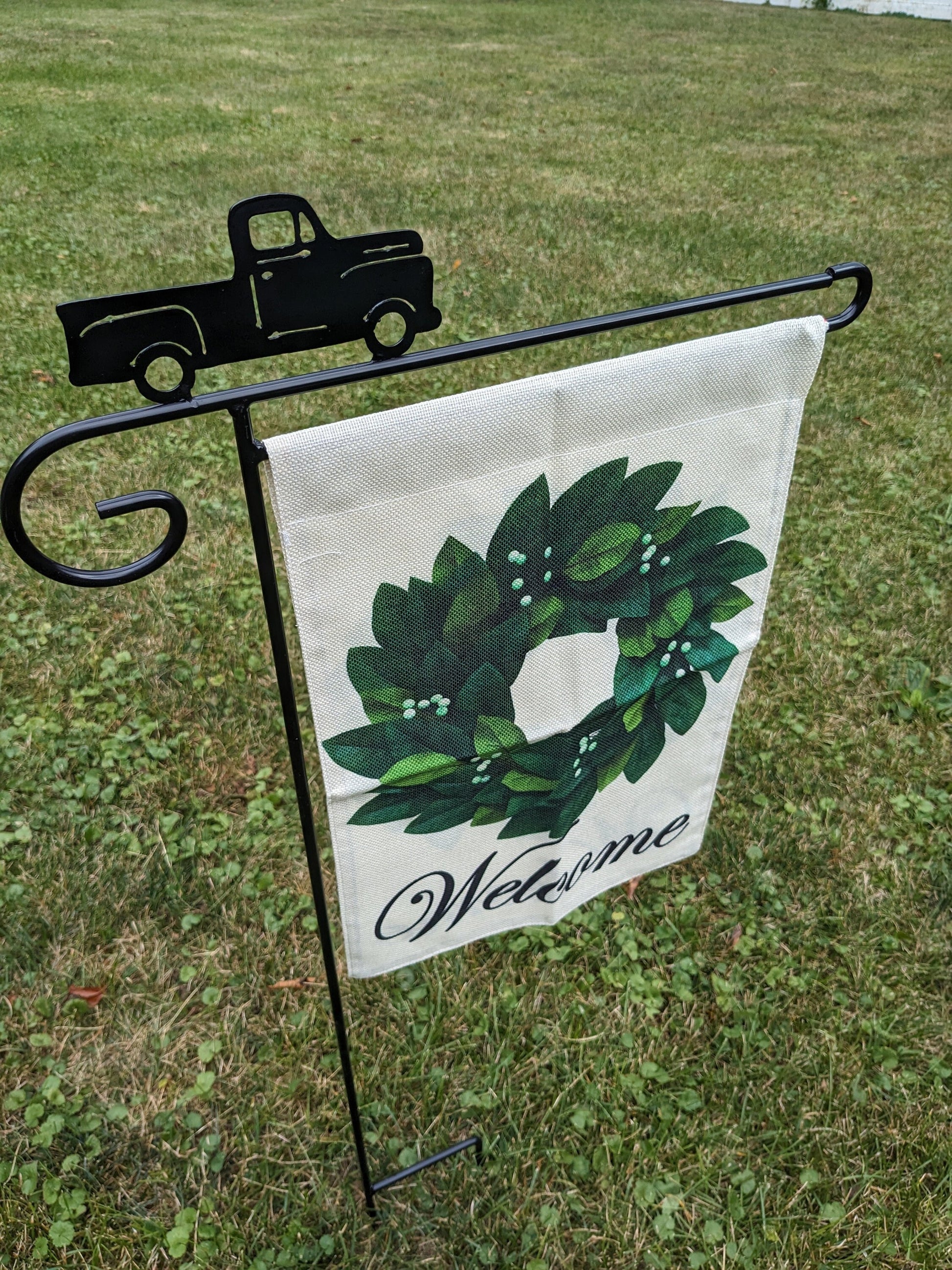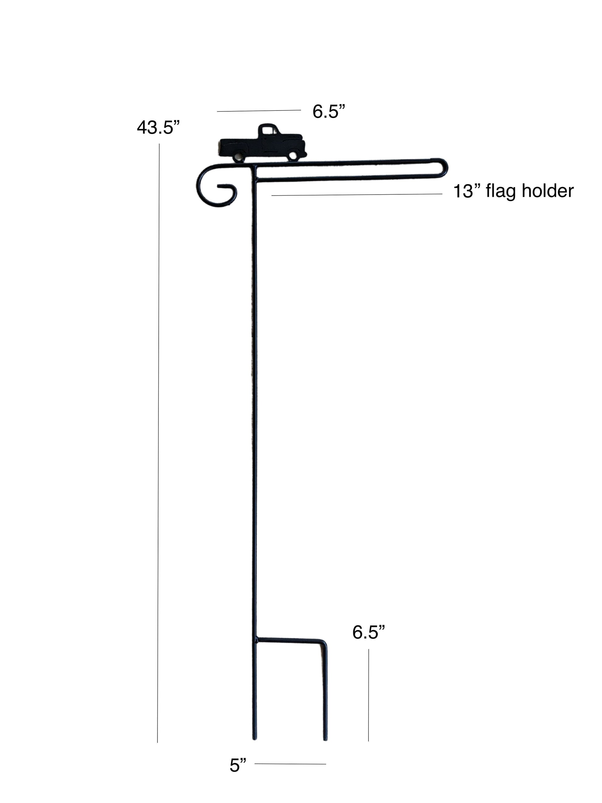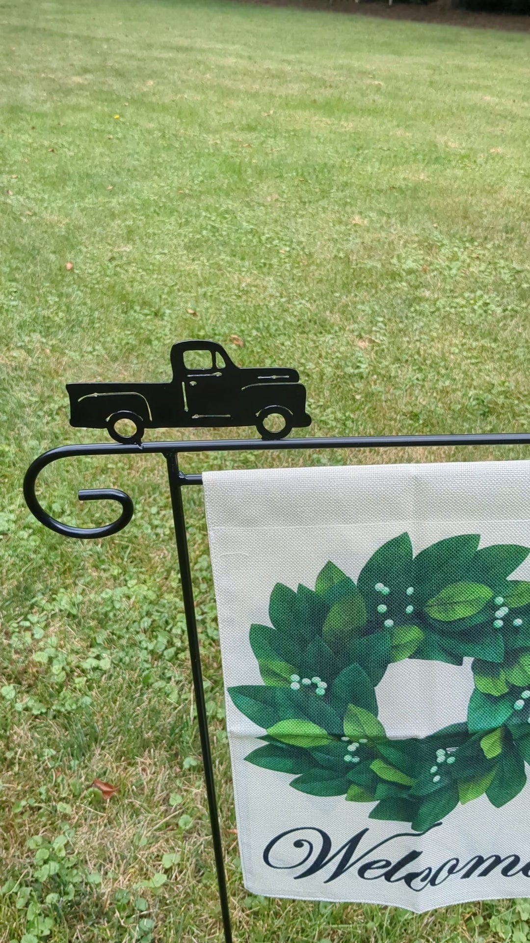 Heavy Duty Powder Coated Garden Flag Holder with a Truck on the top.